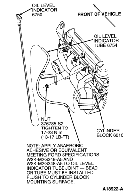 Ford specification WSK-M2G349-A5 and WSK-M2G348-A5 to oil level indicator tube