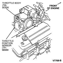 - A throttle body mounted throttle position sensor (TP sensor) (9B989)