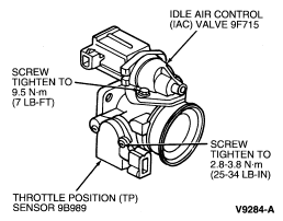 To install throttle position sensor, reverse Removal procedure. Tighten retaining screws to 2.8-3.8 Nm (25-34 lb-in).