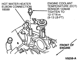 from engine coolant temperature sensor (ECT sensor) (12A648)