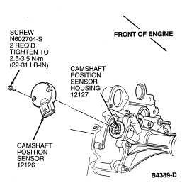 CAUTION: If camshaft position sensor electrical connector is not positioned