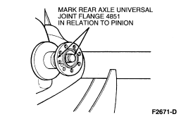 with the mark on the pinion shaft. Install rear axle universal joint flange