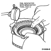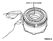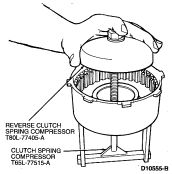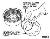 NOTE: To aid in reverse clutch piston spring removal, it may be necessary to apply air pressure to the reverse clutch drum. Block the opposite hole with a finger.