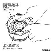 NOTE: Coat reverse clutch piston outer seal and reverse clutch piston small seal, reverse clutch drum, sealing area and seal protector with petroleum jelly.