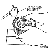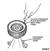 NOTE: To aid handling, clutch may be set in the extension housing (7A039) or a 51mm (2 inch) diameter hole may be cut in the work bench.