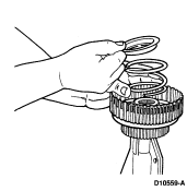 NOTE: Coat piston seals and clutch drum sealing area with petroleum jelly.