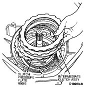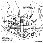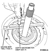 Set the gauge bar across the pump case mounting surfaces. The depth at the intermediate clutch separator plate is: