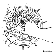 NOTE: Wiggle the output shaft while engaging the reverse clutch splines. Make sure the reverse clutch cylinder lugs are completely seated in the notches of the reverse clutch gear and shell (7A019).