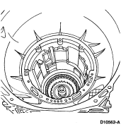 Rotate the output shaft, if necessary, to align the planet carrier splines with the direct clutch hub splines.