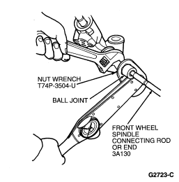 CAUTION: Use care not to damage the front suspension steering ball stud dust seals (3332)
