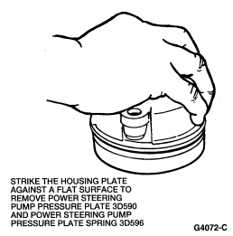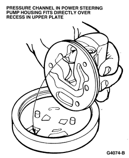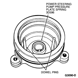 NOTE: The power steering pump pressure plate spring must be inserted with the dished surface upward.