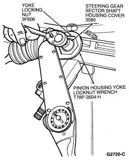 NOTE: The rack yoke clearance adjustment is not a normal service adjustment. It is only required when the power steering gear input shaft and control (3D517) assembly is removed.
