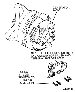 Remove the four screws (T20 TORX®-type head) attaching the generator regulator (10316)