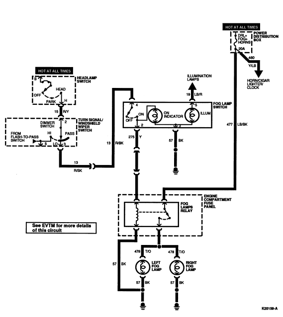 | H | 15 (R/Y) | Headlamp Dimmer Switch Feed |