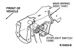 NOTE: Stoplight switch wire harness must have sufficient length to travel with stoplight switch during full stroke of brake pedal . If wire length is insufficient, reroute harness or service as required.