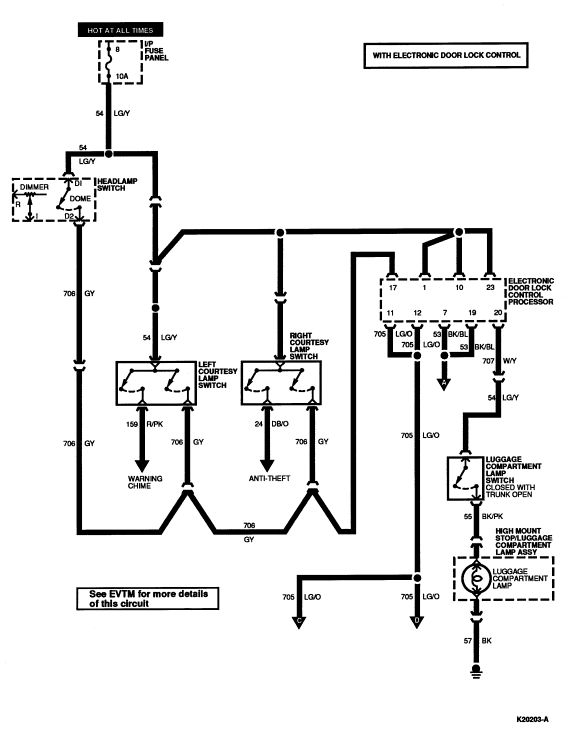 | 20 | 707 (W/Y) | Luggage Compartment Lamp/Switch Output |