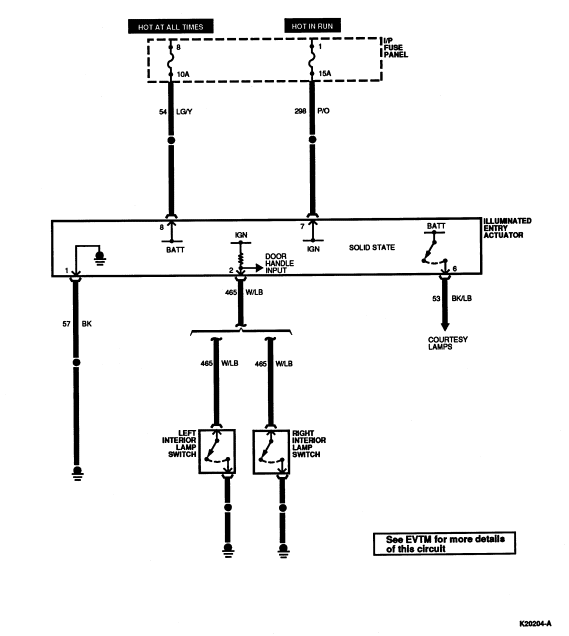 | D1 | 54 (LG/Y) | Interior Lamp Switch Feed |