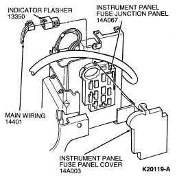 Release lock tab at top of instrument panel fuse panel cover (14A003) .