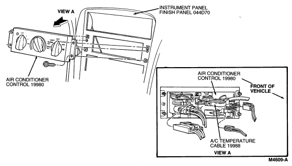 Remove A/C temperature cable (19988) from A/C evaporator housing (19850).