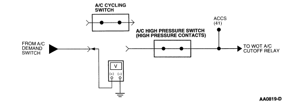 - Measure voltage between WAC circuit at WOT A/C cutoff relay vehicle