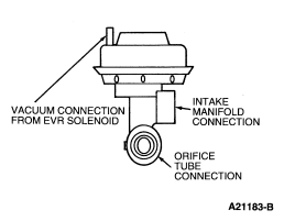 The orifice tube assembly (Figure 84) is a section of tubing connecting the exhaust system to the intake manifold. The assembly provides the flow path for the EGR to the intake manifold and also contains the metering orifice and two pressure pick-up tubes. The internal metering orifice creates a measurable pressure drop across it as the EGR valve opens and closes. This pressure differential across the orifice is picked up by the differential pressure feedback EGR sensor which provides feedback to the PCM.