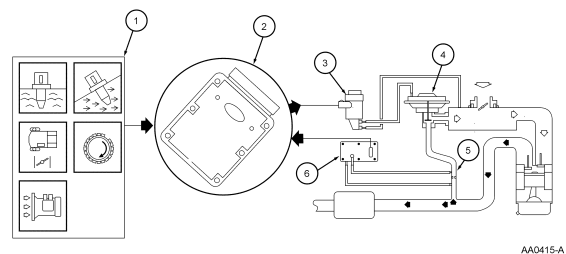 The Exhaust Gas Recirculation (EGR) system controls the oxides of nitrogen (NOx) emissions. Small amounts of exhaust gases are recirculated back into the combustion chamber to mix with the air/fuel charge. The combustion chamber temperature is reduced, lowering NOx emissions.