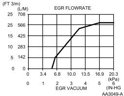Since EGR flow requirement varies greatly, providing service specifications on flow rate is impractical. The on-board diagnostic system monitors the EGR valve function and triggers a Diagnostic Trouble Code if the test criteria is not met. The EGR valve flow rate is not measured directly as part of the field diagnostic procedures.