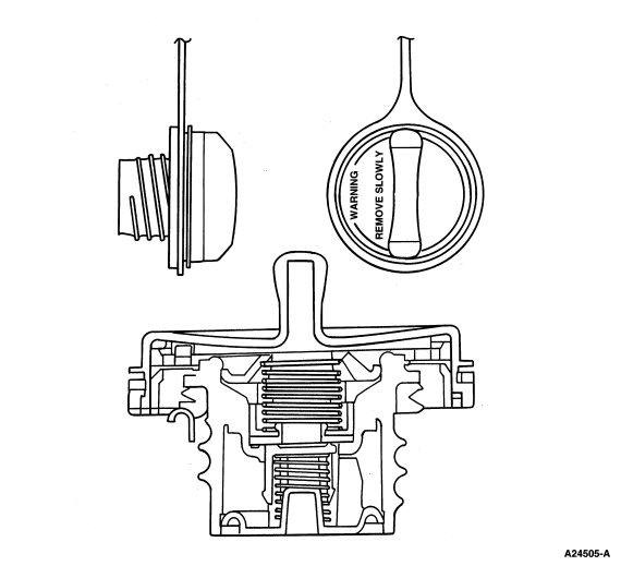 The fuel filler cap (Figure 96) is used to prevent fuel spill and close the evaporative emission/fuel system to atmosphere.