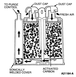 The fuel vapor separator assembly (Figure 95) is used to prevent dust and debris from entering the EVAP canister and canister vent (CV) solenoid from the atmosphere causing partial contamination or complete blockage of the EVAP canister-CV solenoid assembly.