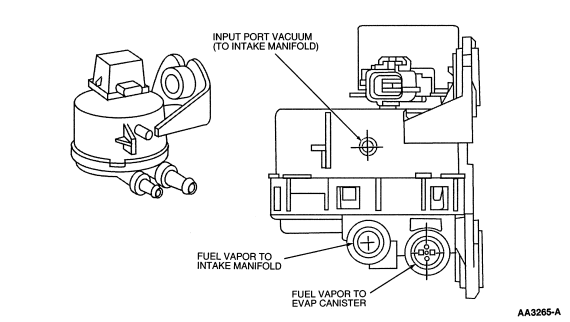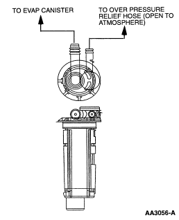The fuel vapor vent valve assembly (Figure 94) for the Vapor Management Flow system functions in the same manner as in the EVAP Running Loss system.