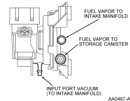 The EVAP canister purge valve (Figure 87) and (Figure 88) is the part of the EVAP running loss system that is controlled by the PCM. This valve controls the flow of vapors (purging) from the EVAP canister to the intake manifold during various engine operating modes. The EVAP canister purge valve is normally closed valve.