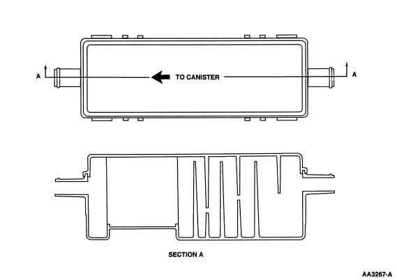 The liquid/vapor fuel discriminator (Figure 97) is a device that separates the liquid and vapor state of fuel at the fuel tank vent and allows only the fuel vapor to move through the EVAP Running Loss system with the liquid fuel remaining in the fuel tank. This is used on Escort/Tracer (2V) and late-year introduction Contour/Mystique.