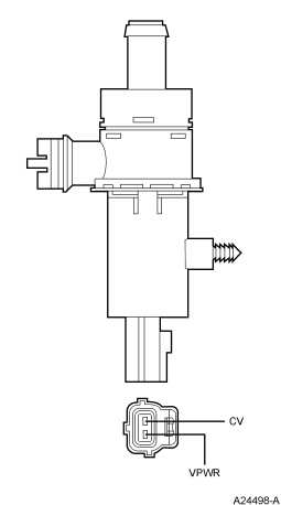 During the EVAP Running Loss System test monitor, the canister vent (CV) solenoid (Figure 91) seals the EVAP canister from atmospheric pressure. This allows the EVAP canister purge valve to obtain the target vacuum in the fuel tank during the monitor run.