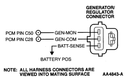 Generator/Regulator harness circuits: GEN-MON, GEN-COM, BATT-SENSE