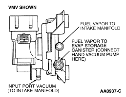 - Connect a hand vacuum pump at the fuel vapor port to EVAP canister at
